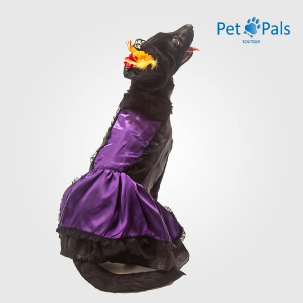 Para aquellos que buscan una opción elegante y colorida, un disfraz de Catrina es una elección perfecta. Inspirado en el Día de los Muertos mexicano, este atuendo está lleno de colores vibrantes y calaveras decorativas. Tu perro será la estrella de la fiesta con este disfraz único y festivo.